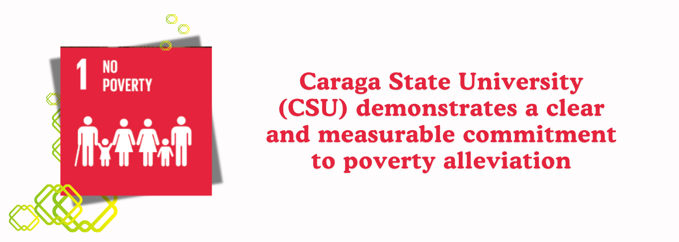 Caraga State University (CSU) demonstrates a clear and measurable commitment to poverty alleviation. The University’s approach holistically integrates research, student financial support, institutional anti-poverty initiatives, and community engagement programs, ensuring that CSU contributes meaningfully to ending poverty in all its forms.